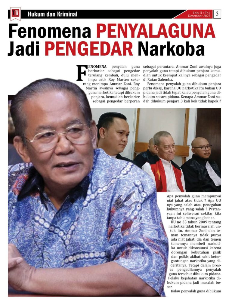 Opini Fenomena Penyalahguna Jadi Pengedar Narkoba Redaksi Berita 28/11/2025 1 minute read Oleh: Komjen Pol purn. Anang Iskandar About the Author Redaksi Berita Subscriber View All Posts Post navigation Previous: KLI 2025, Ajang Bakat Bernyanyi dan Kampanye Anti Narkoba di CirebonNext: Bayangan Intoleransi dan Ancaman Kesatuan NKRI Sambut HUT RI ke-80 Leave a Reply Cancel replyYour email address will not be published. Required fields are marked *Comment * Name * Email * Website Save my name, email, and website in this browser for the next time I comment. Related News Opini Membaca Jabatan Kapolri Dalam Optik Konstitusi Redaksi Berita 29/11/2025 0 Headline Opini Bayangan Intoleransi dan Ancaman Kesatuan NKRI Sambut HUT RI ke-80 Redaksi Berita 28/11/2025 0